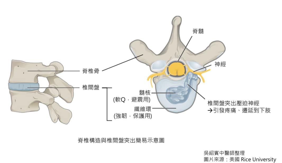 2.脊椎關節或椎間盤問題:椎間盤突出、骨刺壓迫神經而引起下背疼痛的狀況。這些人也會有下肢放射狀疼痛、麻木或無力的症狀。