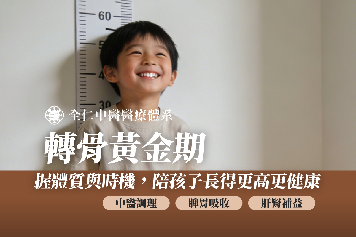轉骨黃金期:掌握體質與時機,陪孩子長得更高更健康 許多家長都有相同的困惑:孩子明明三餐正常、也沒有熬夜,身高卻長期停在同一個刻度,和同齡孩子相比總是矮了一截。事實上,在中醫的觀點裡,身高成長並不只是一個「吃得夠不夠」的問題,而是身體早已透過各種細微的訊號提醒我們——成長的節奏出了狀況。 當孩子進入青春期前後,若開始出現容易疲倦、胃口忽好忽壞、睡眠品質不佳,甚至情緒起伏明顯等情形,中醫會視為「脾腎失調、肝氣不舒」的表現。這些狀態看似與身高無關,實際上卻會直接影響骨骼發育與生長速度。 什麼是轉骨黃金期?為什麼這段時間特別重要? 一般來說,女生轉骨時機約在 9 至 14 歲、男生轉骨時機約在 11 至 16 歲,正處於骨骼快速生長的關鍵階段,此時骨骺尚未閉合,身體對營養、睡眠與運動的回應也最為敏感。中醫認為,脾主吸收、腎主生長、肝主疏泄與調節情緒與筋骨,三者環環相扣,只要其中一環失衡,成長速度就會明顯放慢。 一旦錯過這段黃金期,隨著骨骺逐漸閉合,身高的成長幅度將大幅下降,因此把握正確時機、及早調整體質,對孩子的長高潛力至關重要。 中醫如何看待孩子的身高問題?從體質辨證找出關鍵 影響孩子長高的原因並不單一,而是與體質密切相關。常見的體質類型包括脾虛型、腎氣不足型、肝氣鬱結型與痰濕型。 脾虛型的孩子通常食量不大、吸收力差,容易腹瀉或消化不良,導致養分無法有效供應骨骼生長;腎氣不足型則常見疲倦、發育慢、睡眠品質不佳,生長動能自然不足;肝氣鬱結型多半情緒敏感、壓力大,容易影響夜間生長激素的分泌;而痰濕型孩子則可能體型偏胖、容易倦怠,新陳代謝較差,也會拖慢長高的速度。 因此,中醫強調「辨證論治」,唯有找出真正阻礙成長的體質因素,才能對症調理,而非一味補養。 中醫臨床如何協助孩子衝刺身高? 在轉骨黃金期的調理上,中醫會依孩子體質進行療程安排,而非所有孩子都使用相同的轉骨方。常見的處方包括六味地黃丸加減以補腎氣、健脾開胃方與補中益氣湯來提升吸收力,或透過逍遙散調整情緒與肝氣運行,整體目標在於補腎、健脾、疏肝,讓身體回到適合生長的狀態。 兒童轉骨除了中藥調理,針灸也是常見的輔助方式,透過刺激足三里、三陰交、腎俞、肝俞等穴位,改善睡眠品質、促進生長激素的自然釋放。同時,搭配推拿整脊以調整姿勢,修正駝背或骨盆前傾,避免壓縮脊椎的生長空間。 在營養方面,中醫不鼓勵「亂補」或過度進補,而是依體質提供適合的營養建議。真正的核心不是補得多,而是把身體調整到「吃得進、吸收得好、用得上」的狀態。 臨床案例分享 曾有一位小學六年級的女生,長達半年身高幾乎沒有變化,檢視後發現其體質偏向脾胃虛弱、吸收力不足。透過健脾胃的中藥調理並搭配針灸改善睡眠,兩個月後不僅胃口明顯改善,身高也重新開始成長。 另一位國二男生則因課業壓力大、情緒緊繃,發育明顯落後同儕。診斷為肝氣鬱結型後,採取舒肝理氣的中藥調理,並進行背部經筋放鬆,隨著情緒穩定下來,生長速度也明顯提升。 日常保健與居家調理重點 孩子要長得好,日常生活的配合不可或缺。首先是充足且規律的睡眠,因為生長激素主要在深層睡眠時分泌,是成長的核心關鍵。飲食方面則以天然、高鈣與優質蛋白為主,避免過多手搖飲、油炸食物與冰品,以免傷害脾胃吸收功能。 適度運動與伸展,如跳繩、慢跑、脊椎伸展與核心訓練,有助於刺激骨骼生長並改善姿勢;同時,也別忽略情緒與壓力管理,當肝氣運行順暢,生長激素的分泌也會更加穩定。 簡單來說,好的睡眠、好的吸收、好的姿勢與好的情緒,共同形塑出更理想的成長曲線。 小兒轉骨常見問題Q&A Q1:越早開始補轉骨越好嗎? → 專業中醫師會評估「適當且正確」的藥方與劑量來達到有效安全的轉骨。不 是越早或越多,也不是一味的「胡亂補」,反而提高早熟風險。 Q2:吃轉骨方會變胖嗎? → 調整得當是不會變胖。補脾胃是提升吸收力,不是堆積脂肪。相反,過胖反 不利於長高。 Q3:錯過青春期還有救嗎? → 骨骺未閉合前,仍有提升空間,越早調整效果越好。 Q4:運動越多越能長高? → 運動要選對,過度重量訓練反而抑制生長。 許多家長會擔心是否越早補轉骨越好,其實專業中醫師會評估孩子是否「適合、需要」轉骨,並給予正確的藥方與劑量,過早或過量反而可能增加性早熟的風險。適當調理並不會導致體重增加,補脾胃是為了提升吸收效率,而非堆積脂肪;相反地,過胖反而不利於長高。 即使接近青春期尾聲,只要骨骺尚未完全閉合,仍然有調整空間,越早介入效果越好。此外,運動並非越多越好,選擇合適的運動種類才是關鍵,過度重量訓練反而可能抑制生長。 醫師提醒與結語 孩子的身高,從來不是「吃得多就會長」,而是當體質調整到位,自然就能長得好。若孩子經常感到疲倦、胃口不佳、反覆生病,這些都是成長力正在下降的警訊。中醫透過健脾、補腎、疏肝三位一體的整體調理,幫助孩子建立真正的生長能力。 把握轉骨黃金期,讓孩子在最對的時間,用最對的方式,長得更高、更健康。